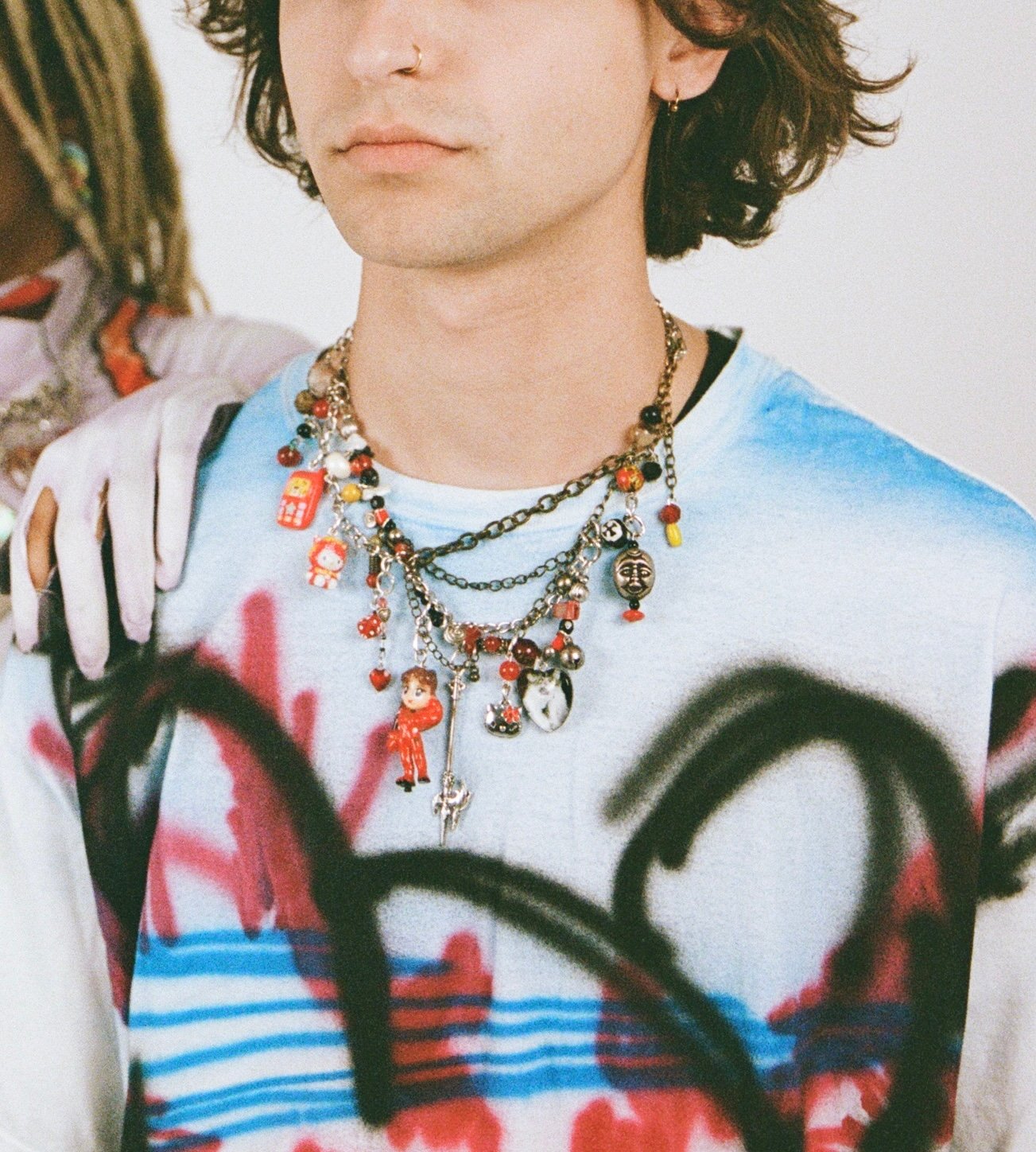 stainless steel, vintage rare Evangelion figurine, upcycled beads