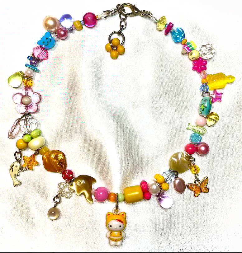 ft. rare vtg hello kitty bikini pendant, colorful up-cycled beads & freshwater pearls πΊ